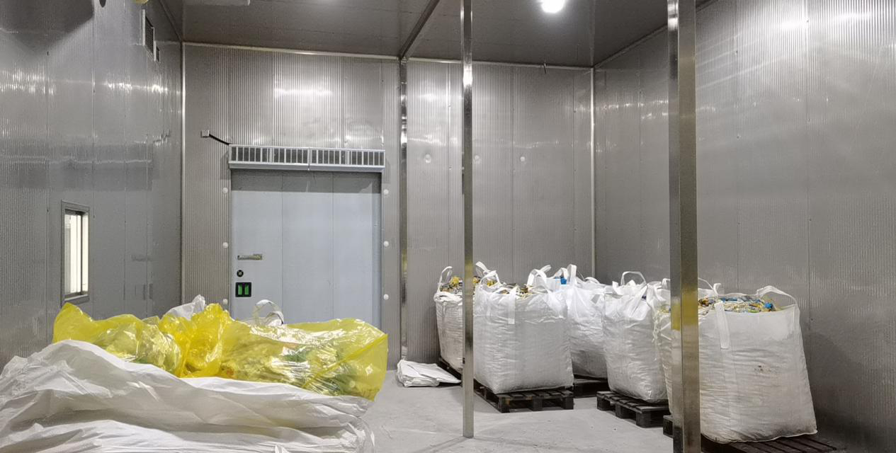 入庫(kù)前3~5天開(kāi)機(jī)降溫,溫度控制在醫(yī)療廢物垃圾冷庫(kù)需求溫度。